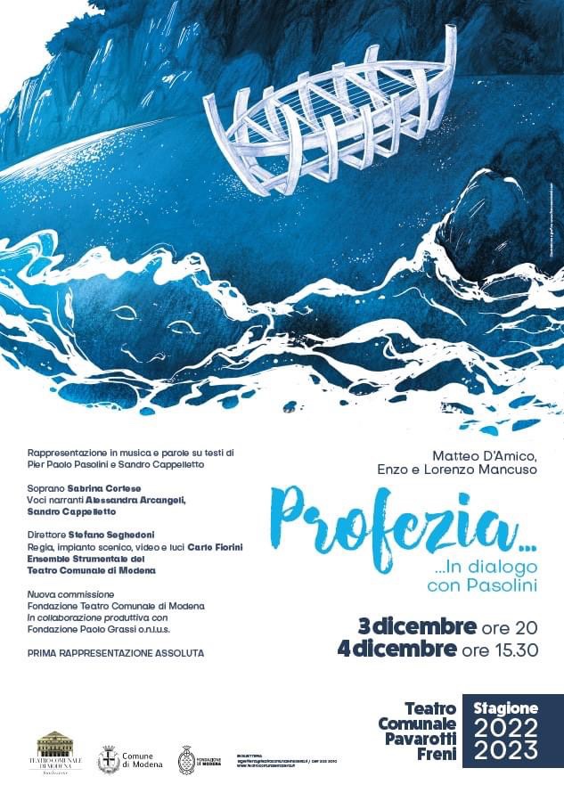 Modena, Teatro Comunale “Pavarotti-Freni” 3, 4 dicembre 2022 Matteo d’Amico; Enzo e Lorenzo Mancuso Profezia…in dialogo con Pasolini . Prima rappresentazione assoluta.