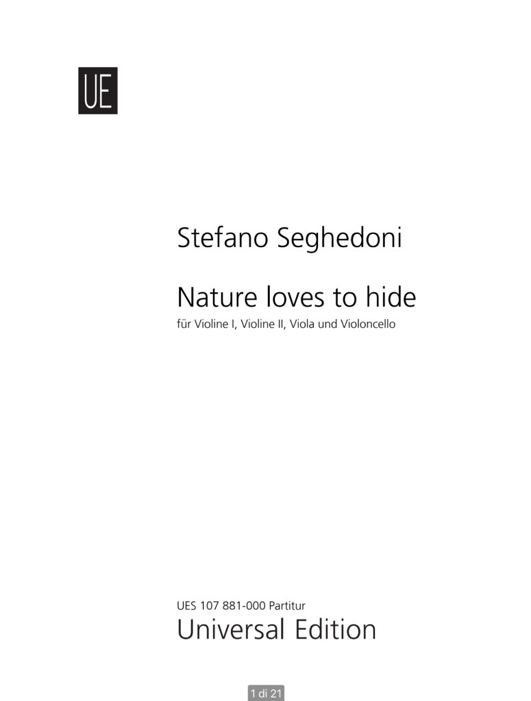 Nature loves to hide (2024) per quartetto d’archi. Copyright by Stefano Seghedoni; Distributed by Universal Edition – Wien